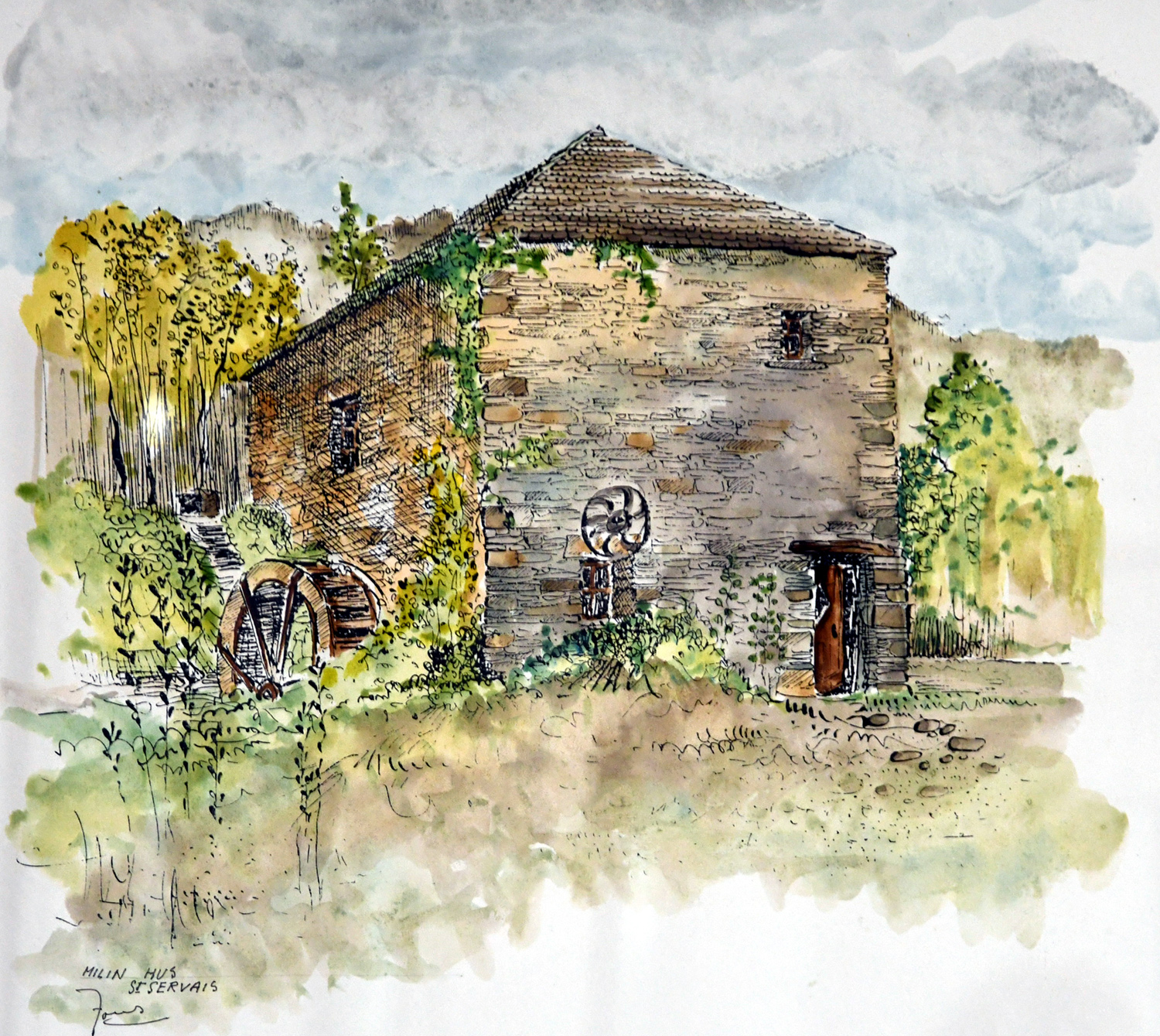 Pourtant, j'ai connu le moulin en fonctionnement : je me souviens, c'est dans les années 55-60, j'étais dans la charrette avec Roger Fur, de Pont-Christ, qui amenait son blé à moudre au moulin. Dalhia, la jument, n'avait pas été ferrée. En ce temps-là, la route n'était pas macadamée comme aujourd'hui. C'était une route de pierres, dont les angles se dressaient souvent de façon proéminente vers le haut. A l'approche du moulin, Dalhia, qui avait vaillament supporté cela depuis Pont-Christ, tentait de quitter la route pour marcher sur les bords herbeux et plus engageants pour ses sabots endoloris. Roger avait un mal fou pour l'en empêcher ... Dalhia sur le bord, c'était la charrette dans la prairie en contre-bas, "gwintet an dud, seier hag all !!!". Heureusement, nous sommes arrivés au moulin sains et saufs, avec les sacs de grains.
