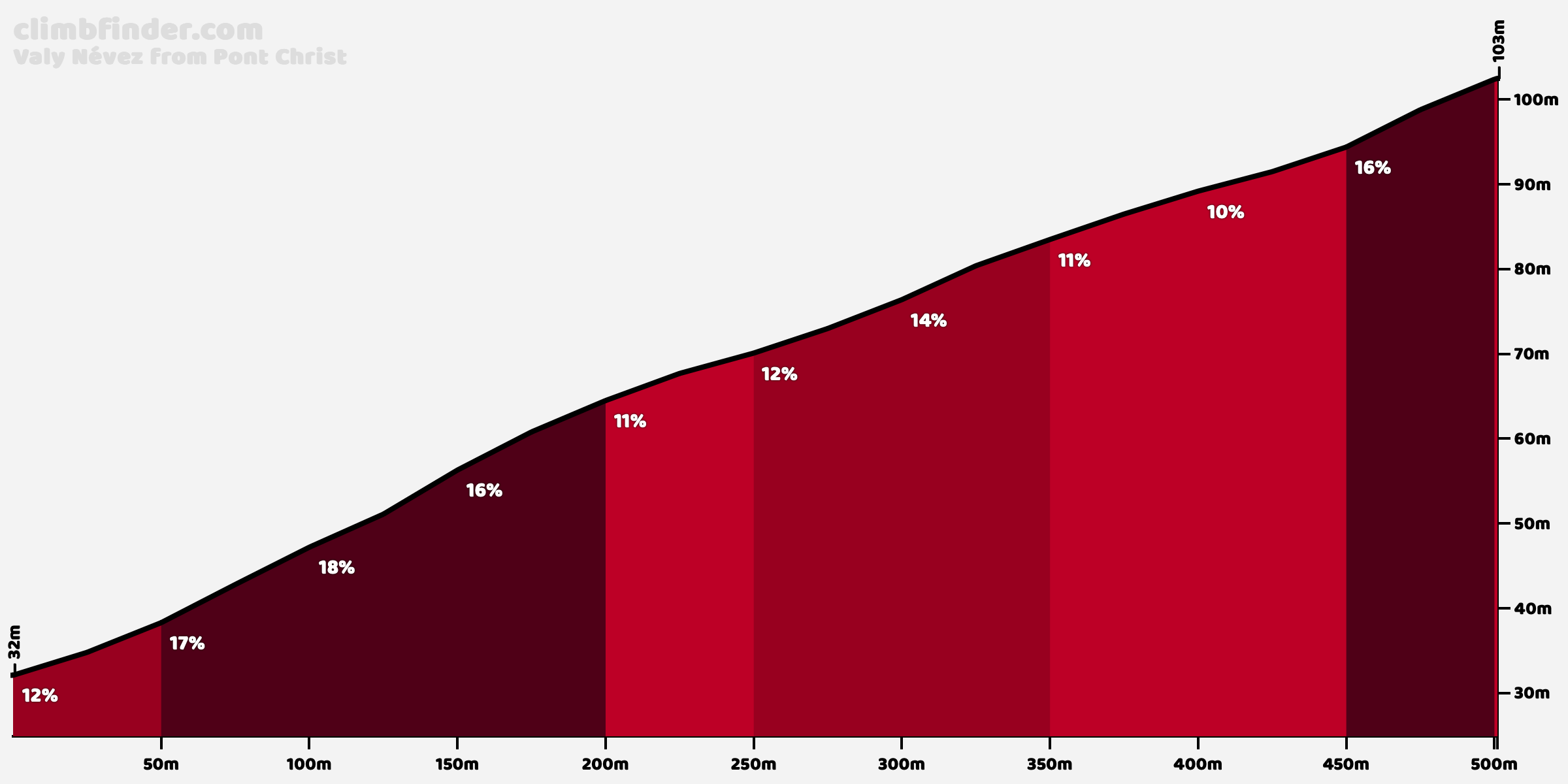 Quelle est la section la plus raide ? Les 100 mètres les plus raides ont une pente moyenne de 18%