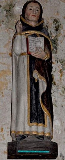 La statue de l'église de La Roche-Maurice est visiblement amputée de son bras droit. Avant d'être cassé, sans doute avait-il le même geste qu'on lui voit sur le dessin de gauche ? Fort probablement. Et sans accuser quelques dégradations au temps de la Révolution, on se doute bien que ce bras levé vers le ciel était la partie la plus fragile de la sculpture.