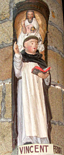 Saint Vincent Ferrier est fêté le 5 avril. Il n'est le patron d'aucune église ni d'aucune chapelle dans le diocèse de Quimper et Léon. On retrouve cependant sa statue dans les églises de Guengat, Confort, Plomeur, Ploudalmézeau, La Roche-Maurice (portail du clocher) et Trémaouézan, et dans les chapelles de Lambader en Plouvorn et de Cuburien en Morlaix. ![]()