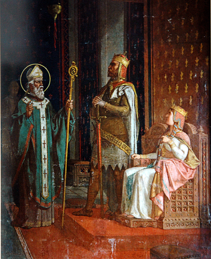 Saint Frédéric fait des remontrances au roi Louis Le Débonnaire Frédéric, évêque d'Utrecht, reproche à Louis le Débonnaire, fils de Charlemagne, son mariage incestueux avec Judith de Bavière et réprouve la conduite dissolue de son épouse. |