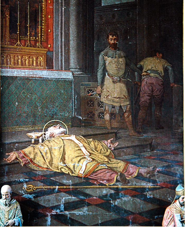 A Landerneau on ne pouvait omettre dans le groupe des martyrs le grand primat d'Angleterre, saint Thomas Becket, archevêque de Cantorbéry. Il était le patron d'une des trois paroisses de la ville ; son église est toujours debout et sert de succursale à Saint-Houardon. Saint Thomas tient en main l'un des trois glaives qui furent les instruments de son martyre.