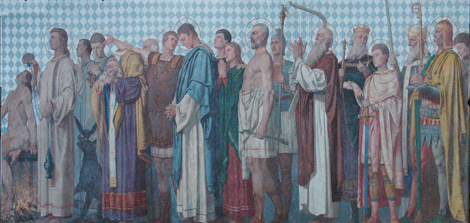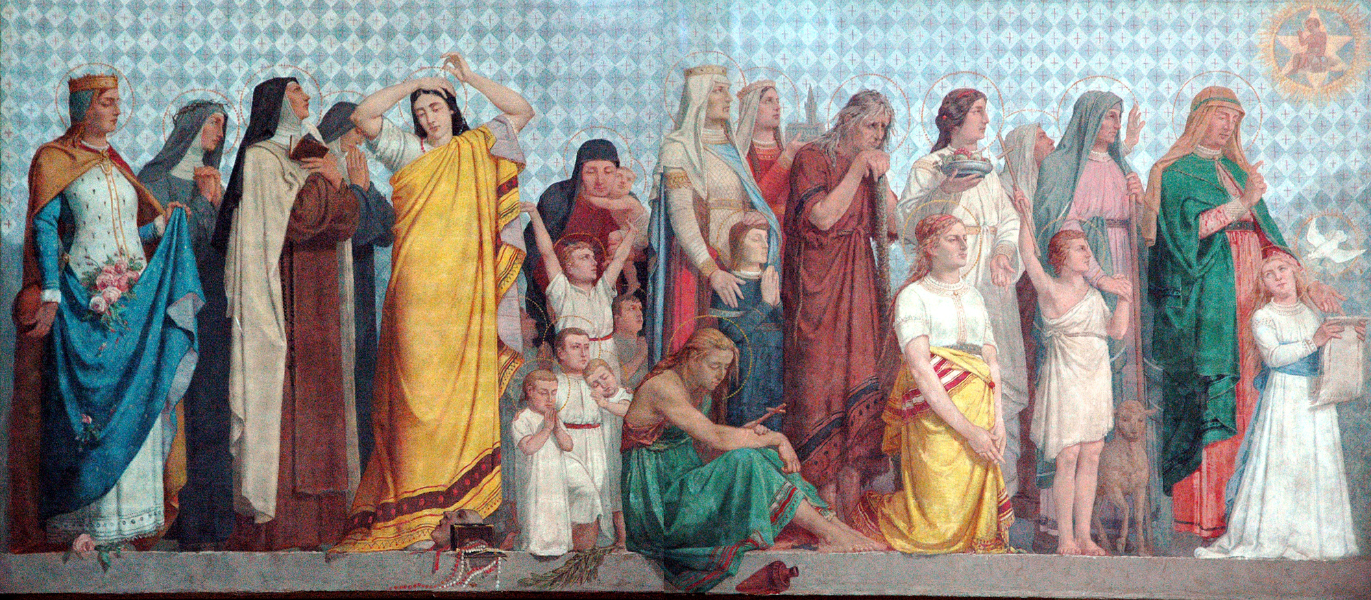 1 - Défilé des saints et des saintes, assemblage des 3 tableaux de la nef