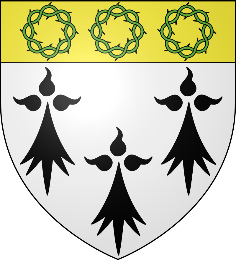 Il est curieux de constater que, sur l'écu, les motifs du chef sont plutôt des fleurs ou des quintefeuilles que des épines et que sa couleur, d'après la symbolique en noir et blanc (lignes parallèles verticales), est "de gueules".