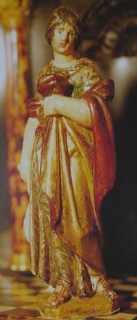 ![]() | A gauche, détail de la statuette de Junon, bois sculpté (restaurée).