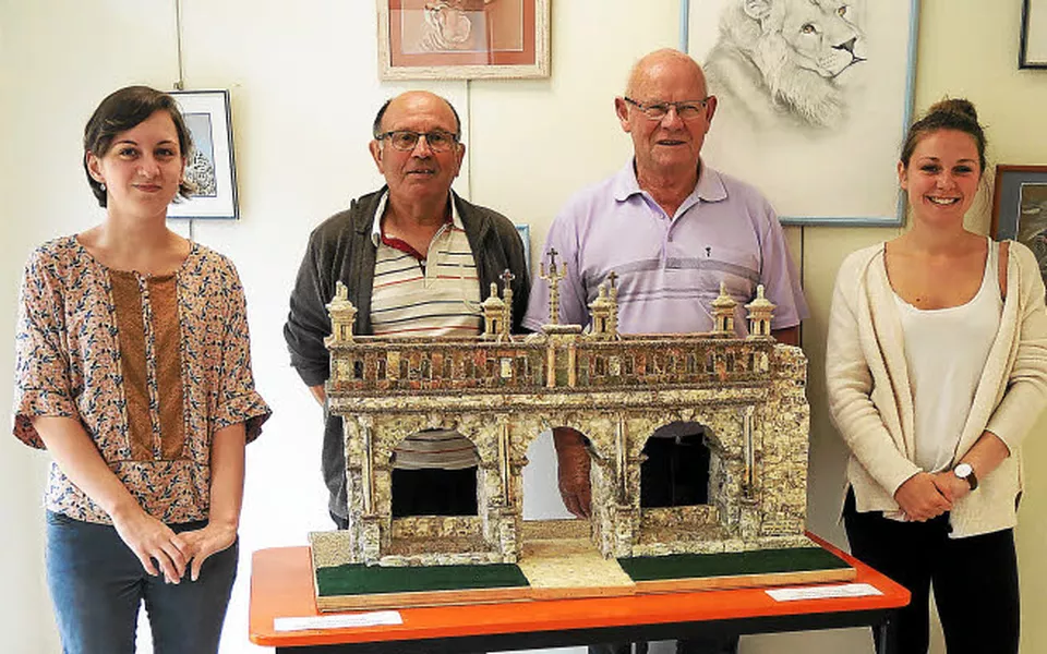 Claude Bourlès a offert à la commune une maquette de l'arc de triomphe qui marque l'entrée du cimetière saint-jeannais.