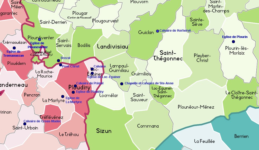 Plourin-les-Morlaix - Hôpital-Camfrout - Primelin - Carantec (voir carte des lieux cités)
