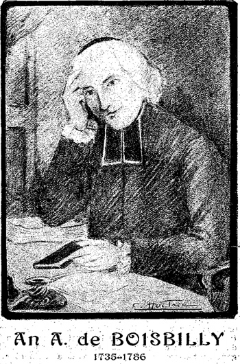 L'abbé de Boisbilly était député du chapitre de Quimper aux Etats tenus à Nantes en 1767 (ou plutôt 1764). Une lettre, fort maladroite, concernant cette assemblée, adressée par M. le contrôleur-général de Laverdy à M. le duc d'Aiguillon, commandant la province, avait été lue au sein de l'ordre de la noblesse. Dès le lendemain, cette même lettre circulait traduite en chanson, et excitait le rire par toute la province.