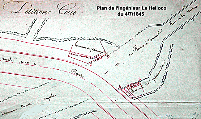 Le plan n'apporte pas d'informations particulières par rapport à la voie que nous connaissons aujourd'hui, sinon qu'il prévoyait de la faire passer en amont du moulin de Pont-ar-Bled et de son étang.