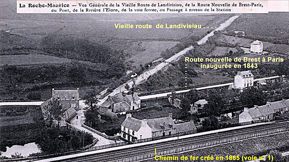 Autrefois, comme nous l'avons vu dans un autre chapitre la route nationale de Brest à Paris, ne passait pas à Pont-Christ. Venant de Landerneau par la rive gauche de l'Elorn, au sud de la rivière, elle la franchissait au pont de La Roche, et grimpait sur le plateau pour se diriger vers St-Servais et atteindre Landivisiau en ligne droite.