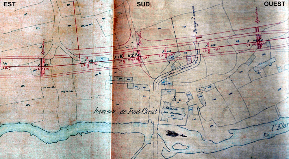 La voie ferrée dans le bourg de Pont-Christ et les maisons qui vont être supprimées.