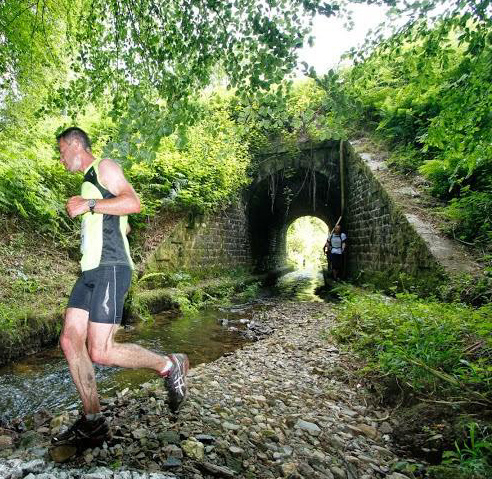 | Ponceau sur la rivière St-Jean au Frout - côté amont. Cliché pris pendant le trail de l'Elorn. | Côté aval - Photo Gisèle Lesquin |