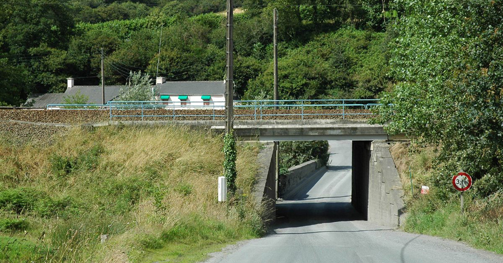 (2) Sur la section de Pont-Christ, il y eut sans doute moins de consommation d'explosif, car on sait que pour éviter le creusement de tunnels ou la création de ponts, la solution fut de dévier le cours de l'Elorn, notamment dans les environs de Kerfaven.