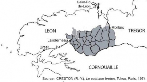 La mode "justinok", celle des porteurs de justaucorps, couvre la zone suivante : au nord, celle-ci est délimitée par Saint-Derrien, Plougourvest, Guiclan ; à l'est, par la rivère de Morlaix ; au sud par Plouneour-Menez, Commana, Sizun ; à l'ouest, par Le Tréhou, La Roche-Maurice, Plouneventer (source L. Elegoet dans Les Juloded).