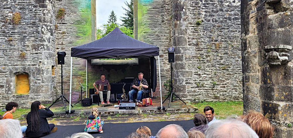 L'église était pleine et le public occupait aussi le placître, le bord de l'Elorn, ainsi que la route où était installé un autobus qui fournissait des assiettes de charcuterie apéritives. Elles venaient compléter les boissons apportées par l'association organisatrice.