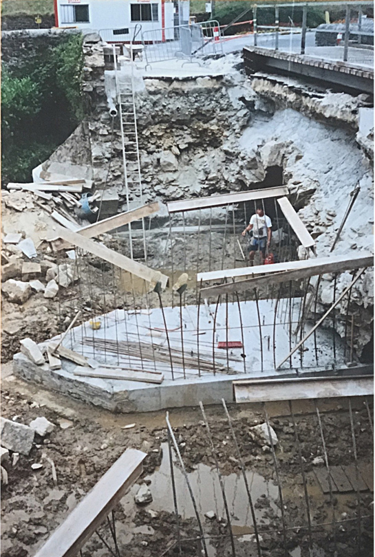 L'auscultation de l'arche effondrée a nécessité la venue de spécialistes de l'Equipement, le mercredi 1er février. Il a fallu employer une grue de levage et une nacelle pour descendre voir au ras des flôts l'ampleur des dégâts. Les agents ont été impressionnés : l'arche centrale est creusée sur une profondeur de quatre mètres, soit la largeur de la voie amont (le pont fait 9 m. de large). En bordure, la chaussée ne tient que par l'enrobé et une conduite ! C'est très fragile.