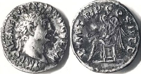 ![]() Un denier de Trajan daté de 98 après J.C. |