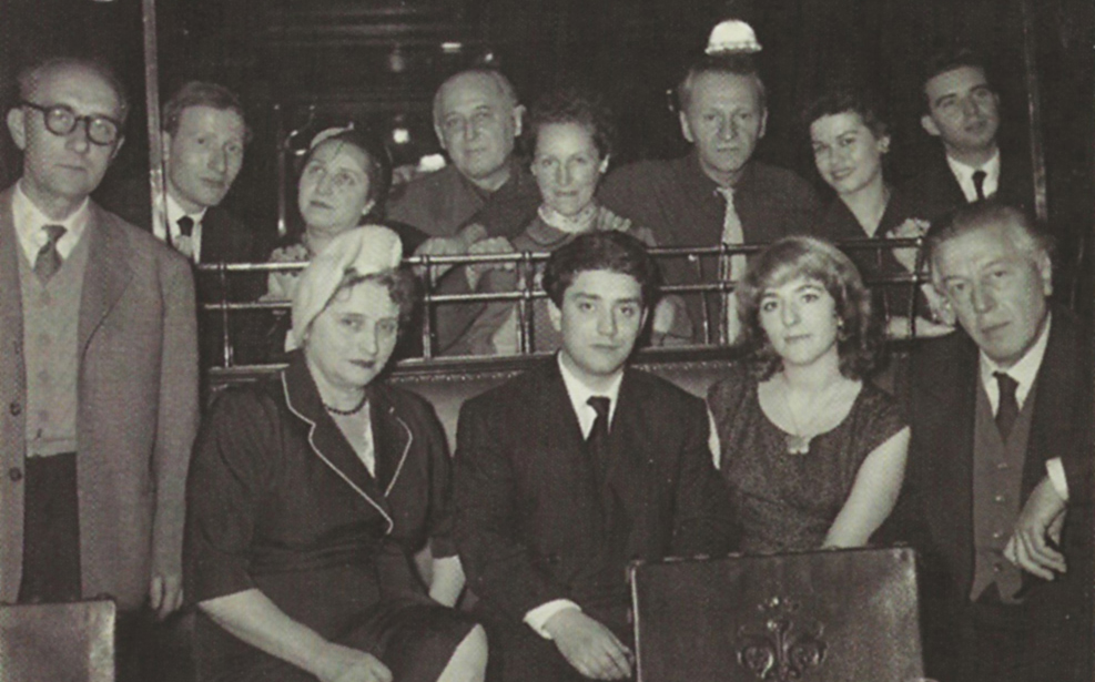 2è rang : Jean Schuster, Rosette Voillequin-Birac 1, Benjamin Péret, Huguette Lamba, Charles Estienne, Michelle Guillard, Jacques Birac, fils de Rosette 2