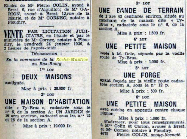 En 1936, Yves Floc'h cherche à vendre sa forge. Voir l'annonce du 19/1/1936 dans la Dépêche
