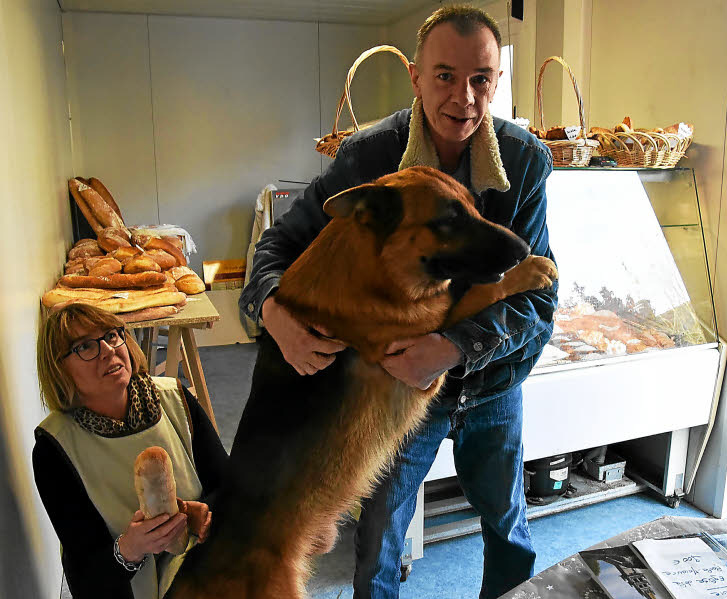 Un préfabriqué sert de lieu de vente. Les clients étaient là. Pour le pain du jour et pour le héros de l'année : Loustic.