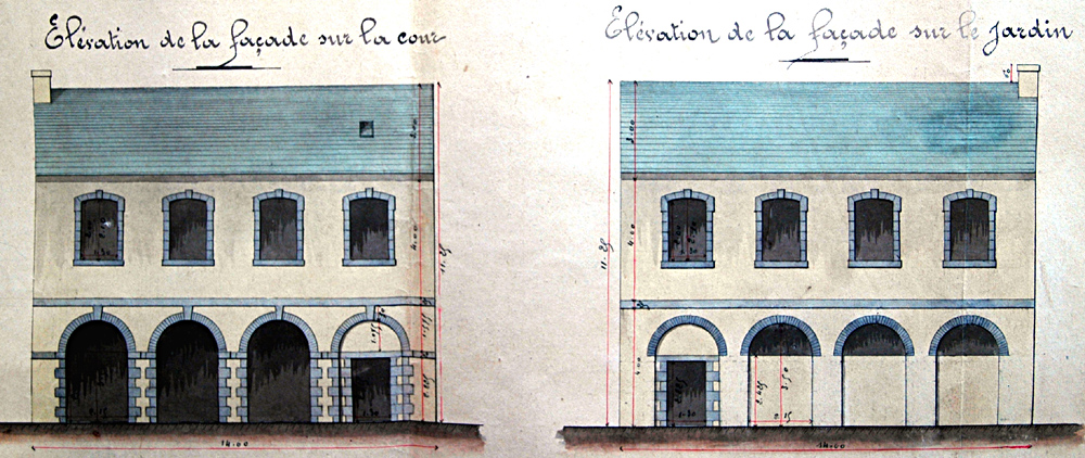 Le premier étage et les mansardes sont occupés par la mairie et le logement de l'instituteur", ainsi s'exprimait l'architecte Barillé en introduction de son devis descriptif le 2/9/1882 (ADB 592 E DEPOT 35).