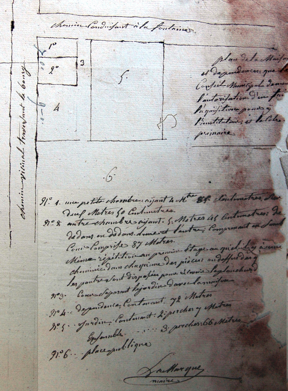 Le métré du 21/12/1838, réalisé par le même architecte à la fin des travaux, notera une somme de 5.159 francs, du fait des travaux supplémentaires, nécessités pour les fondations qui ont été établies sur pilotis, de 319,12 francs.