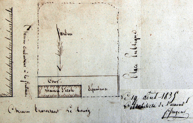Le plan prévoyait que "l'édifice aurait deux entrées et serait disposé de manière à contenir deux classes séparées : l'une pour les garçons, l'autre pour les filles, et un logement convenable pour l'instituteur. La dépense totale, y compris l'ameublement des classes, est évaluée à une somme de 4.800 francs" (source la lettre du sous-préfet du 26/1/1837).