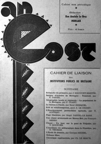 En 1934, Yann Fouéré créée l'association Ar brezhoneg er skol et 346 communes bretonnes adoptent le voeu de l'association pour l'enseignement du breton dans le primaire et le secondaire.