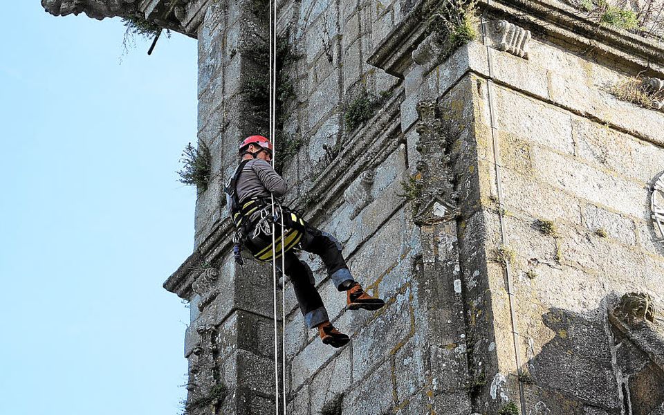 | 2015 | Église Saint-Yves. Opération de haute voltige sur le clocher Mercredi matin, Ronan Le Fer, gérant de l'entreprise rochoise « Arbres et cordes », spécialisée dans les travaux en hauteur, était à pied d'oeuvre sur le clocher de l'église Saint-Yves. Il s'agissait pour lui et son assistant Marzin Riou d'intervenir sur le clocher afin d'enlever la végétation et reboucher les joints. Cette opération, demandant un certain sang-froid, s'effectue au moyen de cordes et en rappel, à 20 mètres de hauteur. (Télégramme 11/9/2015) | Presse | ||||||||||||