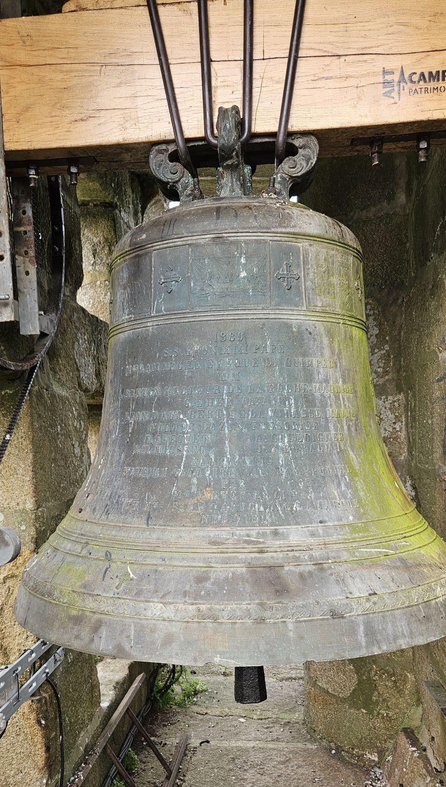 | 2025 | Lundi 26 et mardi 27 mai, les cloches de l’église ont bénéficié de travaux afin de remplacer les jougs, très usés. La société Art Camp, venue des Côtes-d’Armor et spécialisée en travaux acrobatiques et en art campanaire, est intervenue au clocher pour remplacer les jougs des deux cloches. C’est lors d’une visite de l’architecte des Bâtiments de France qu’un défaut majeur d’usure a été constaté sur ces pièces essentielles. L’art campanaire regroupe l’ensemble des savoir-faire liés à la fabrication, la pose et la maintenance des cloches et de leurs mécanismes. « Le joug est la structure en bois massif, généralement en chêne, qui soutient la cloche et permet son balancement, explique Éric Gouez, responsable technique de la commune. Ces jougs sont essentiels pour la sécurité et la préservation du patrimoine. Lors des travaux, nous avons découvert que l’un d’eux datait de 1974 et présentait une usure avancée. » Les jougs ont été démontés et remplacés. Les éléments ont été montés par l’extérieur à l’aide d’un treuil, un procédé technique délicat qui garantit la sécurité du personnel et la préservation de l’édifice. « Le remplacement, d’un coût de 22 000 €, inclut aussi le traitement des battants des cloches, le changement des paliers ou supports mécaniques et des plateaux moteurs, ainsi que la remise à niveau de la minuterie », précise Éric Gouez. « L’aiguille de l’horloge avait trois minutes d’avance, à cause d’un problème lié au carillon. Tous ces éléments sont liés », ajoute-t-il. Une maintenance annuelle sera assurée afin d’éviter tout dommage futur. (source Télégramme du 30/5/2025). | Presse | ||||||||||||