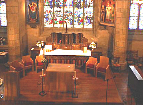 - les bas-côtés ne sont pas clos au niveau du choeur. Ils le seront lorsque les balustres en provenance de Pont-Christ seront installées dans l'église.