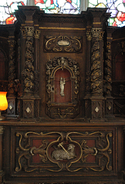 Il y a quelques années, deux bannières de très grande valeur étaient accrochées à ce mur, derrière les stalles. Mais où sont-elles maintenant ? Très certainement, dans la sacristie.