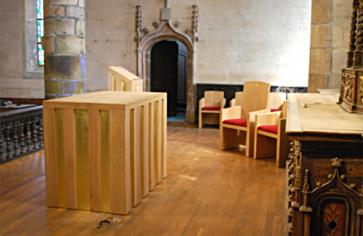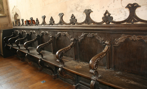 - les stalles sont disposées entre l'autel et le jubé, de chaque côté de la nef