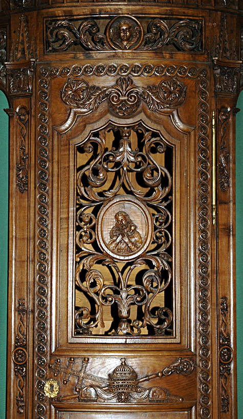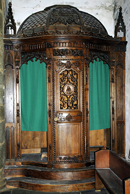 "Relégué au bas de l'église, le confessionnal du nord est une alliance intéressante du style du XVIIIè siècle avec le néo-gothique qui sera en vogue après 1850. Le confessionnal du sud est néo-classique" (Y.P. Castel - 16/1/1991)