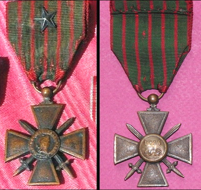 2 - Cité à l'ordre de la division n° 142 du 4/11/1916. "Employé comme agent de liaison près de l'infanterie pendant les attaques du mois de d'octobre 1916 s'est acquitté de ses missions avec beaucoup de courage se portant souvent aux endroits les plus exposés pour renseigner son chef de groupe sur la situation exacte de l'infanterie."