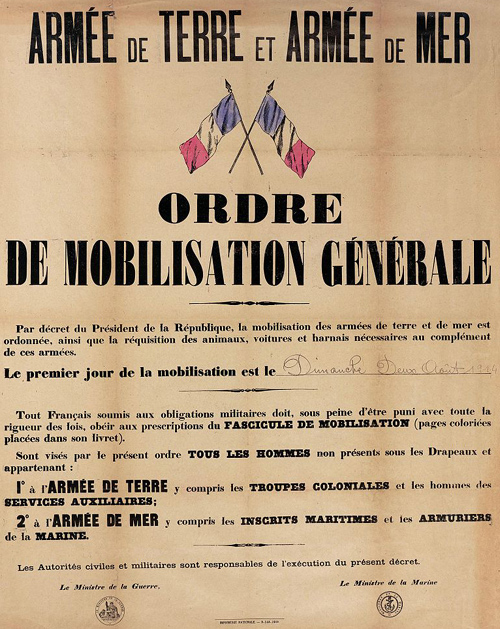 Mobilisation générale le 2/8/1914