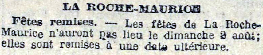 Tout allait pour le mieux dans notre commune de La Roche en cette fin juillet 1914, malgré le climat tendu des relations internationales. Des fêtes étaient même programmées pour le dimanche 2 août suivant :