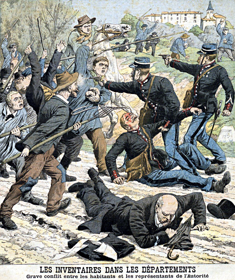 Mais cette intrusion des représentants du gouvernement dans des édifices, construits et entretenus par des paroissiens et avec leur argent, et ce depuis fort longtemps, pour en transférer la propriété à d'autres, suscita un mouvement de révolte dans toute France. Dans certaines régions, cette révolte fut parfois très violente.