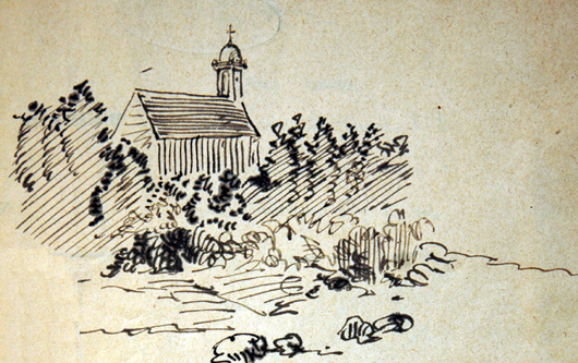 Une étendue de terre autre fois sous semil, où est la chapelle, cernée de mur du côté du chemin ; au dessous de ladite chapelle un petit terrain déclos, par lequel il est dû un passage aux habitans voisins.