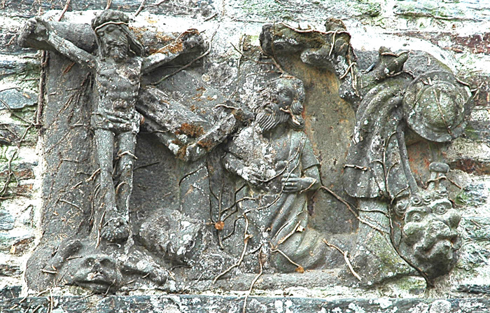 Dans Châteaux et manoirs de Plouneventer, J.Y. Le Goff indique que le manoir de Kergreguen était possédé : Le blason de sinople à 3 coquilles d’or est celui de Kergreguen, à Plounéventer. Kergréguen fut bien l’un des manoirs principaux des Keraoul mais l’attribution de cet écu à la Maison de Keraoul par Courcy, Torchet, Le Goff et autres, dont le Msf 18713 de la BN, provient du fait que Kergréguen fut acquis par Maurice de Parcevaux, seigneur de Mésarnou, qui en rendit aveu en 1550. Il était l’époux de Jeanne de Prathir et leur fils ainé, Yves, portait ainsi le titre de seigneur de Prathir et Kergreguen. Il n’est pas surprenant que les armes de Prathir, issues de son titre principal, aient été arborées au manoir de Kergréguen, d’où la méprise de les attribuer aussi à Kraoul. (Guy Ducellier, message du 3/7/2023)