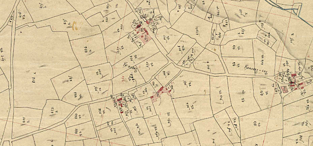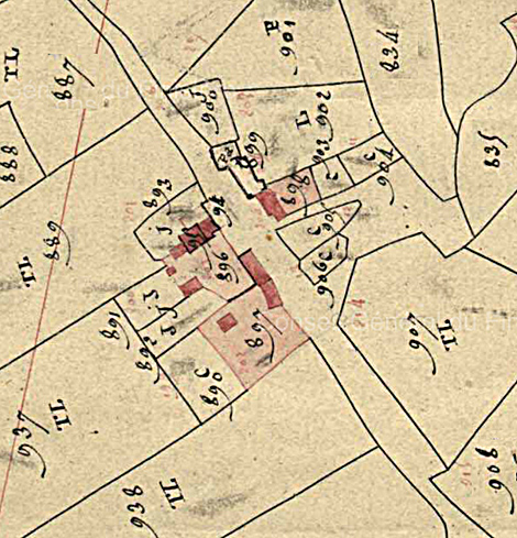 Mais dès 1858, Paul de Lavillasse, qui exploitait les terres de Kernevez en tant qu'agriculteur, avait acheté d'autres parcelles en ce lieu (voir l'origine de la propriété dans l'acte de vente du 13/06/1872). Par comparaison des deux actes, on peut connaître leur numéro. Il y a notamment la parcelle 889, où il construisit son château.