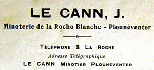 | 1893-1965 ca | Famille Cann-Martin | Jean-Marie CANN, né le 16/10/1839, Kerillien, Plouneventer, décédé le 5/12/1925, Leur ar Moris, Plouneventer (à 86 ans), minotier à La Roche Blanche. Marié avec Françoise ARGOUARCH, née vers 1837, Plouzevede, décédée le 9/11/1866, Mestual, Landivisiau (à 29 ans), cultivateur, dont