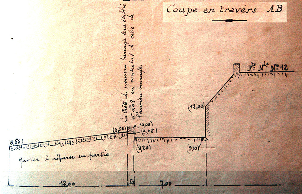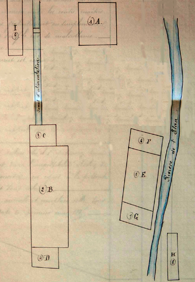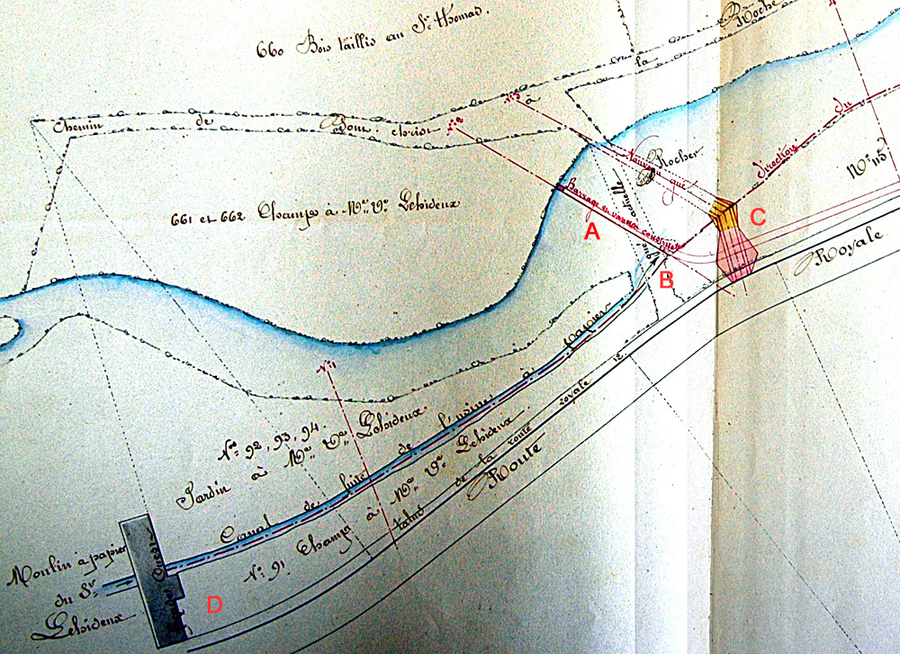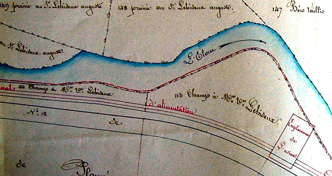 Plan du 4 juin 1845 : début du canal d'alimentation en amont