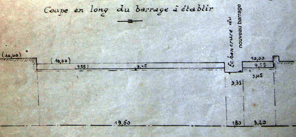 Les plans de cette reconstruction sont présentés ci-après. On peut en voir le résultat dans le chapitre consacré à l'Elorn. Le barrage est communément appelé le "barrage Jouan" du nom d'un locataire de l'ancienne Fonderie de Brezal, il constitue un obstacle intéressant pour les descentes de kayaks en hiver.