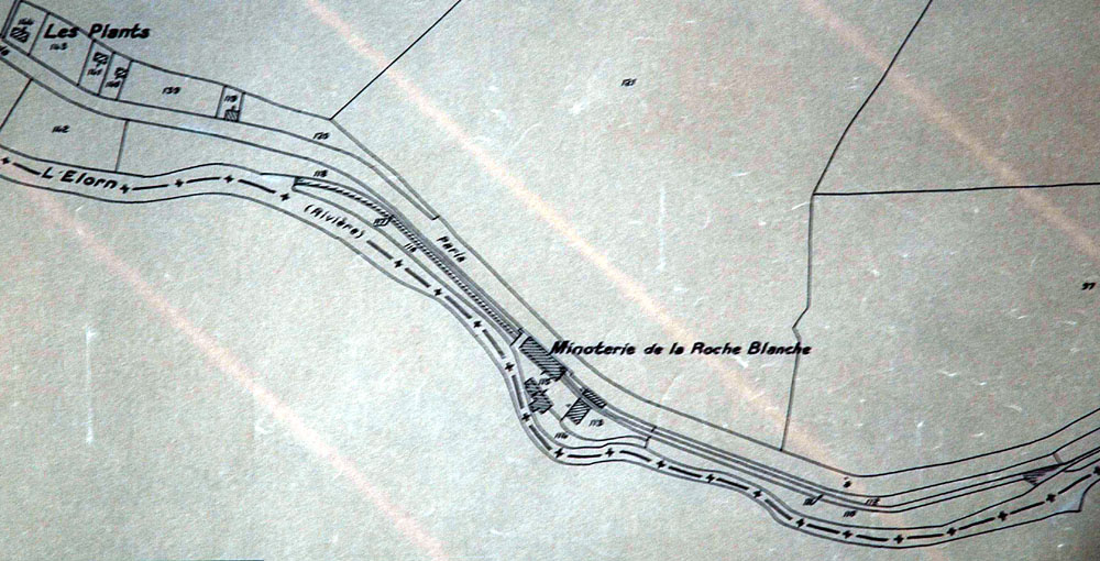 Comme on le voit sur le plan, il y avait là un gué qui permettait de traverser la rivière pour rejoindre le chemin de Pont-Christ à La Roche. Ce gué était donc à modifier. Plus tard, il fut remplacé par un pont au niveau de la minoterie.