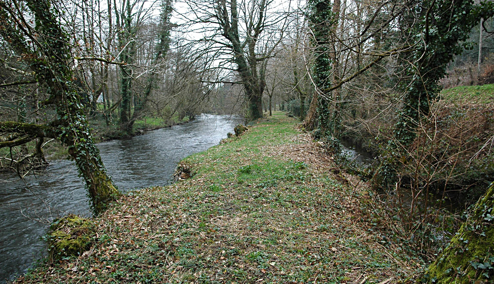 En direction de La Roche, vers l'aval : le canal de fuite à droite et l'Elorn à gauche - 24/3/2013 - Photo A. Croguennec