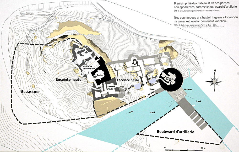 Début janvier 2021 : Initialisation du chantier de cristallisation et de valorisation des vestiges du château (phase 2) engagé par le conseil départemental du Finistère. Il porte sur l'ensemble de l'enceinte basse, située à l'Est du château, et sur les vestiges qui ont été révélés par les fouilles archéologiques menées de 2014 à 2020, notamment la tour d'artillerie. L'aménagement s'inscrit dans la continuité de la phase 1, qui portait sur la mise en valeur de la poterie, du donjon et du logis, et il comprend :