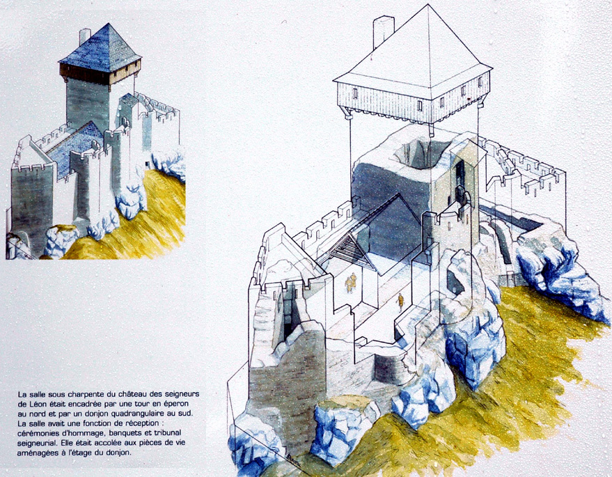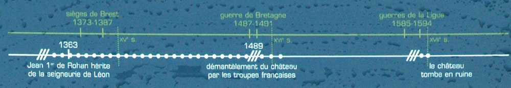 Chaque année, on en apprend un peu plus sur ce château aux enceintes multiples et aux structures superposées. On sait désormais que le premier édifice a été construit entre 978 et 1027, grâce à la datation de l'angle d'une courtine et d'un sol. 1 Le château a donc émergé en même temps que les grandes familles : les vicomtes de Cornouaille ont d'abord occupé le château, puis leurs ennemis, les vicomtes de Léon, de l'autre côté de l'Elorn, l'ont emporté et se sont emparés de la place.