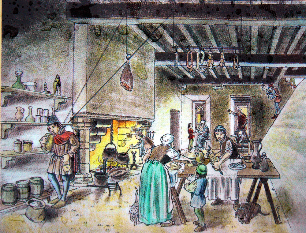 La grande cheminée est celle de la cuisine du château, du temps des Rohan, comme l'évoque l'illustration ci-contre. Voir photo aujourd'hui