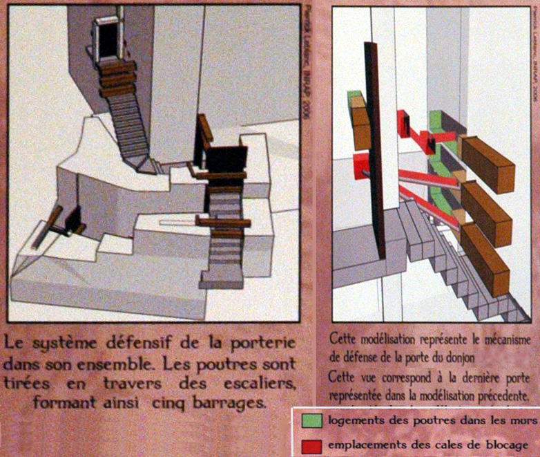 La porte du donjon s'ouvrait à plusieurs mètres de hauteur, comme c'était alors l'usage, et surplombait le couloir d'accès au logis.